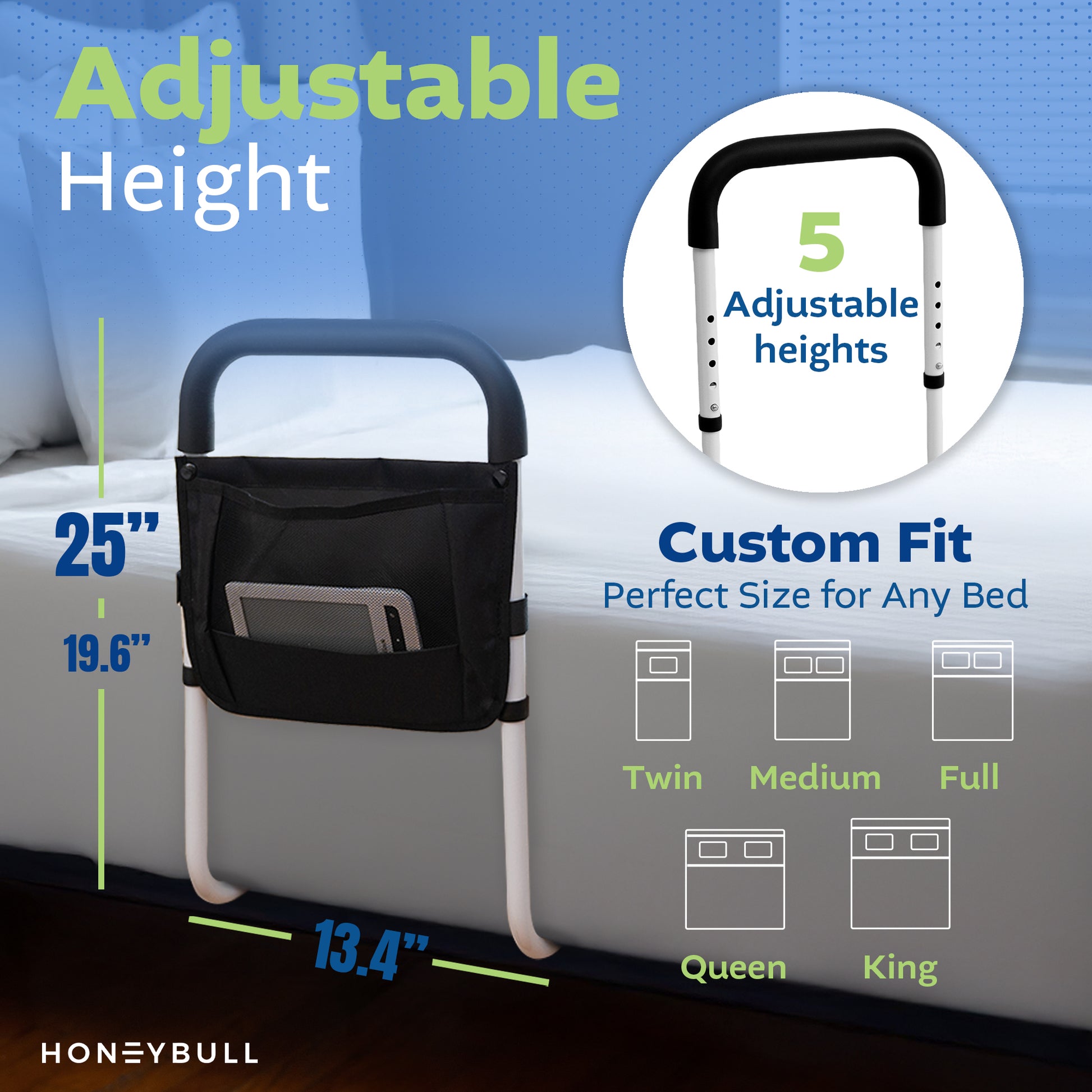 - Adjustable Height, Fixed Width: Set the handle height to your comfort; fixed-width design feels solid; fits Twin, Full, Queen, and King mattresses; dependable assist without changing your bed