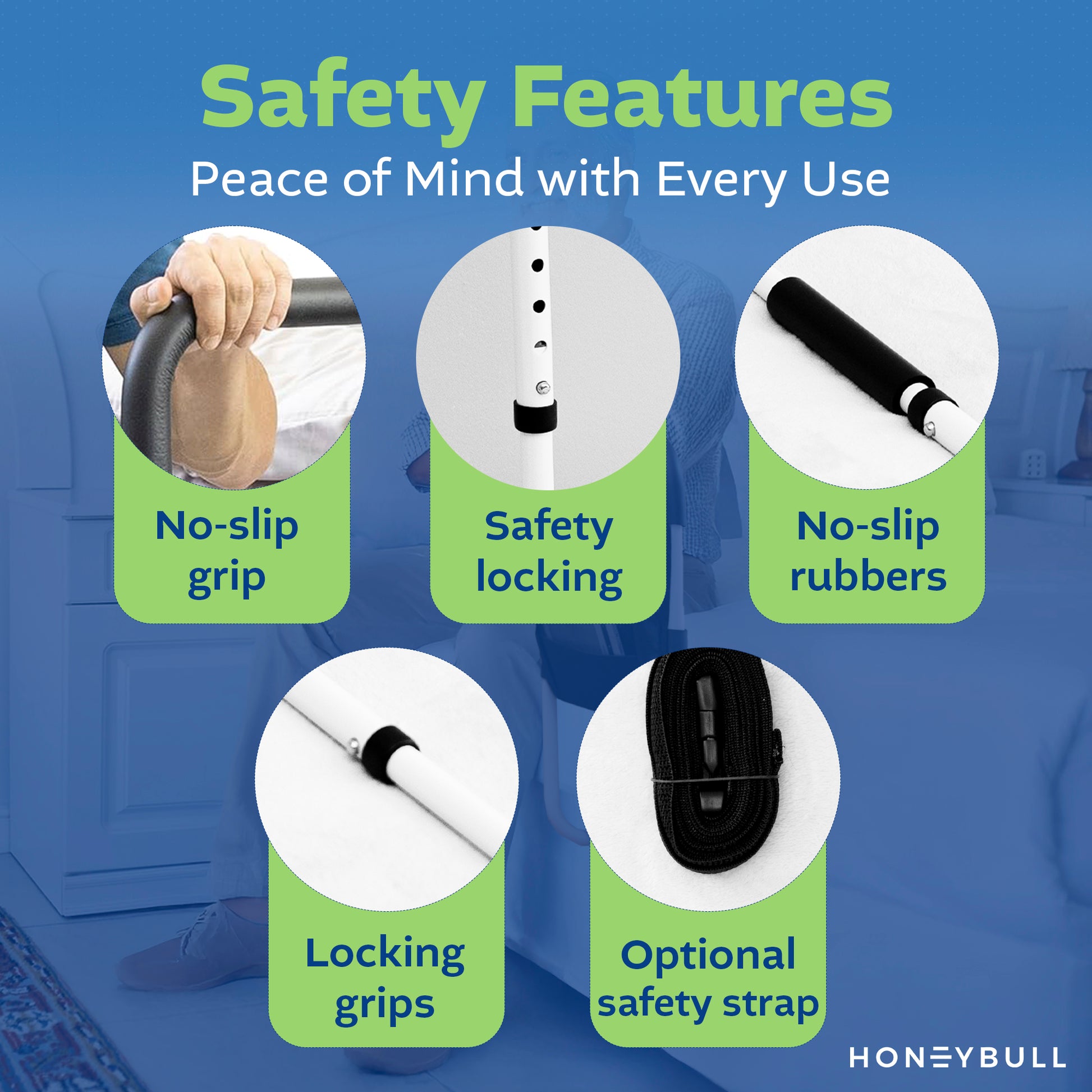 - Safer Bed Transfers: Strong steel frame and non-slip padded handle help you sit up and stand with confidence; reduces wobble during bedside movements; practical support for nighttime trips and morning get-ups