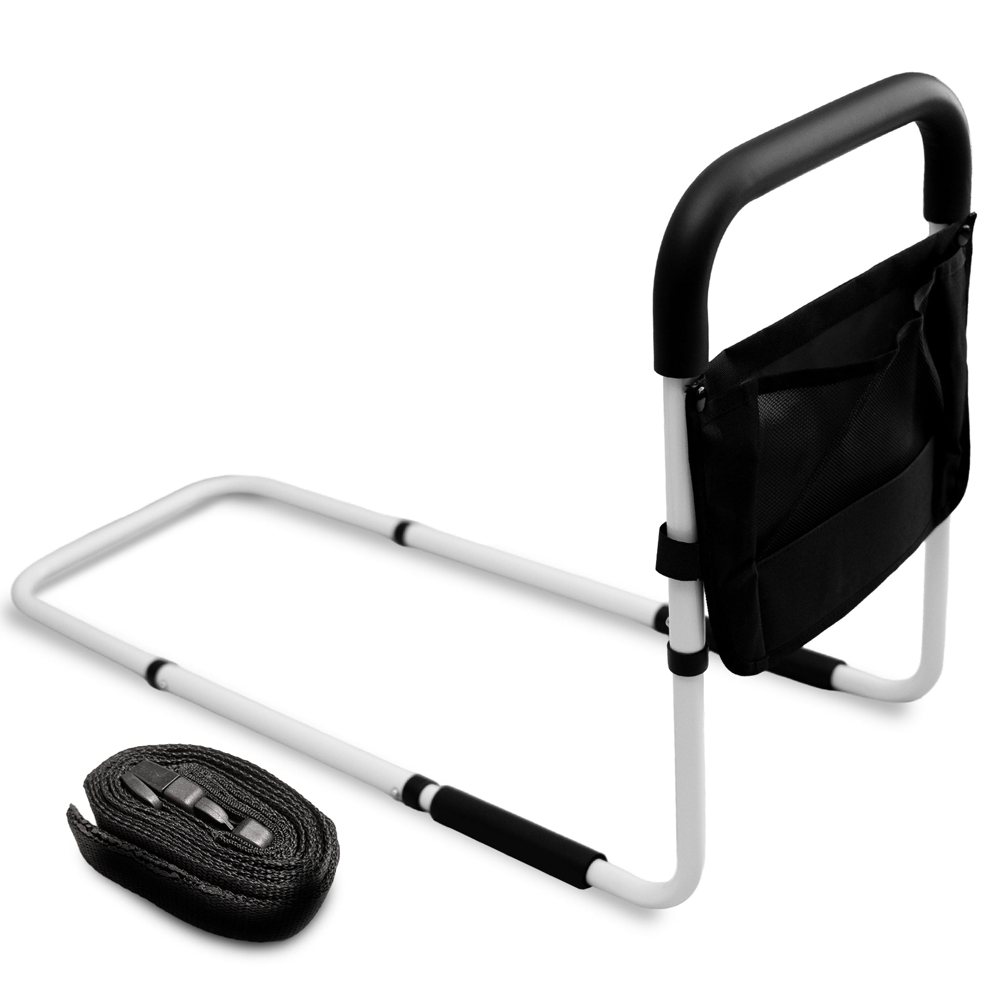 - Everything Included: Bed assist rail with integrated support bar; safety strap for secure anchoring; side storage pouch for glasses, phone, or remote; tool-free assembly in minutes