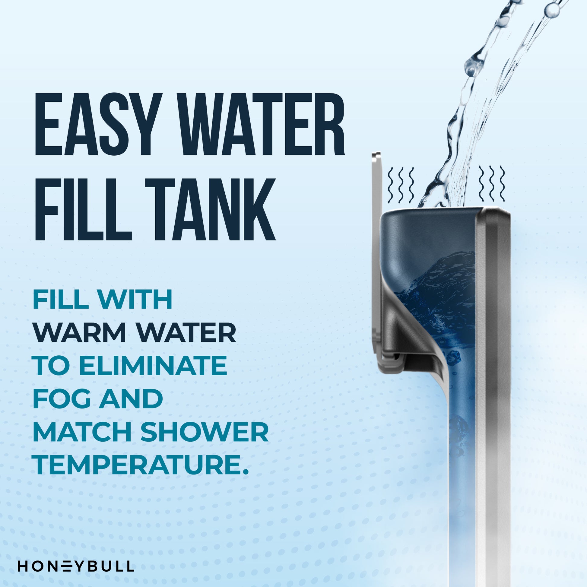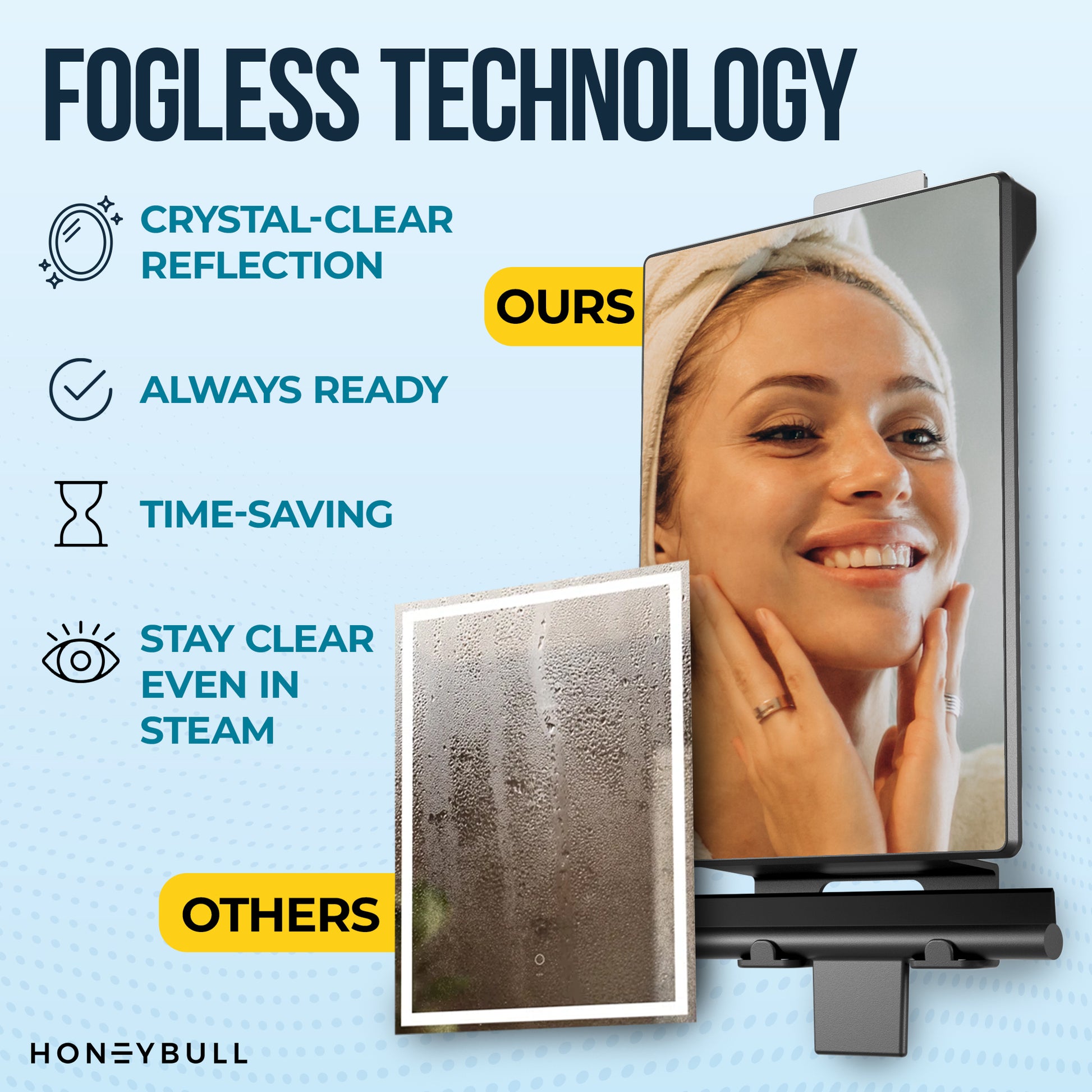 - Fog-Free Technology, Activated with Warm Water: Enjoy a clear view every time with this HoneyBull fogless shower mirror. Simply fill the built-in water tank with warm water before each shower - the temperature equalizes and eliminates fog naturally without coatings, electricity, or hassle.