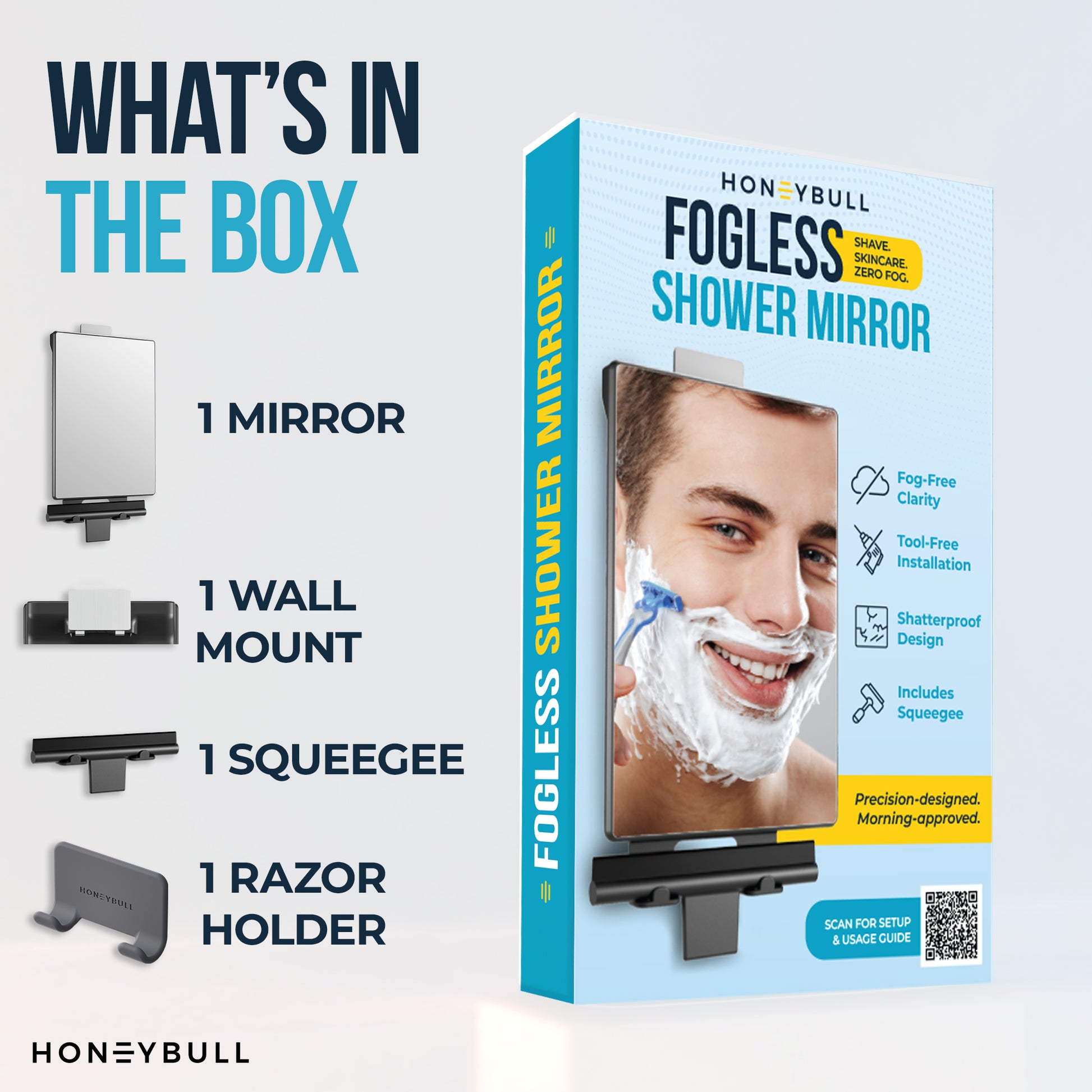 - No Power Required, Lifetime Backing: Install in minutes with no drilling or batteries. This shaving mirror for shower is built to last and backed by HoneyBull’s lifetime warranty - for quality and confidence that stays with you.