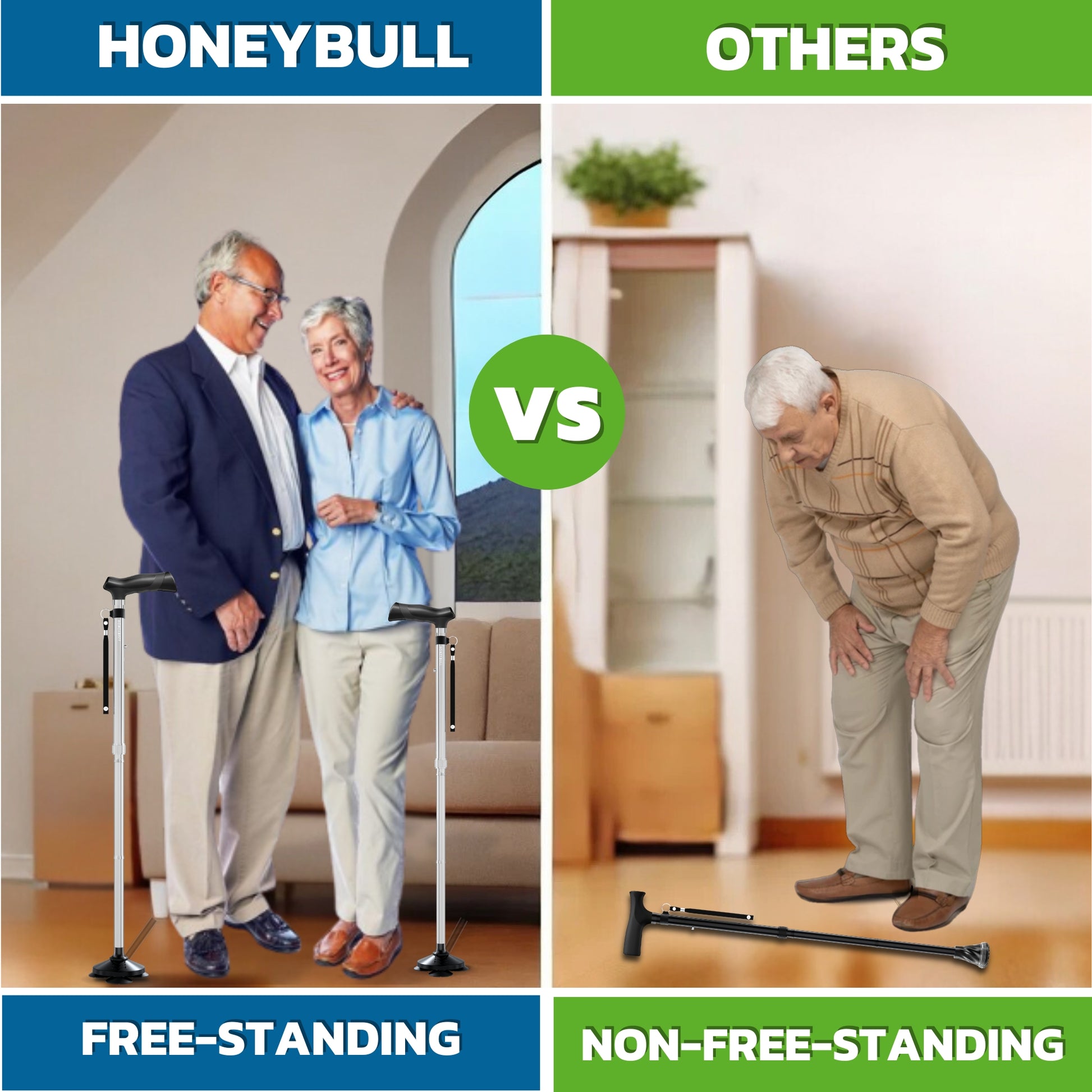 - Stability You Can Trust: The HoneyBull Walking Cane stands on its own with a pivot-base cane tip, giving you steady support when you pause to rest or need both hands free. Perfect as a walking cane for seniors, adults, and anyone needing balance support indoors or outdoors