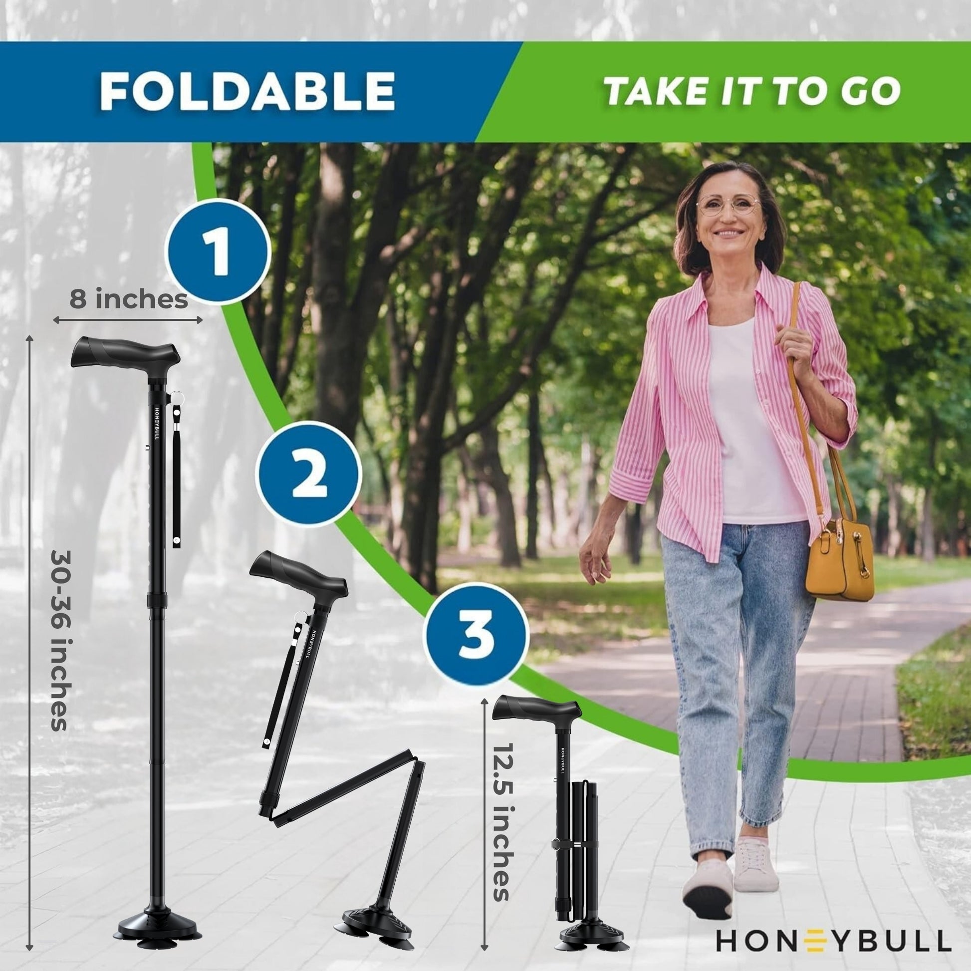 - Stability You Can Trust: The HoneyBull Walking Cane stands on its own with a pivot-base cane tip, giving you steady support when you pause to rest or need both hands free. Perfect as a walking cane for seniors, adults, and anyone needing balance support indoors or outdoors
